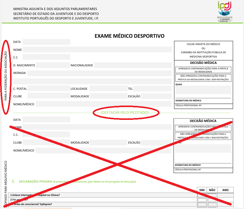 Formulário Exame Medico Desportivo - enviar apenas o destacável